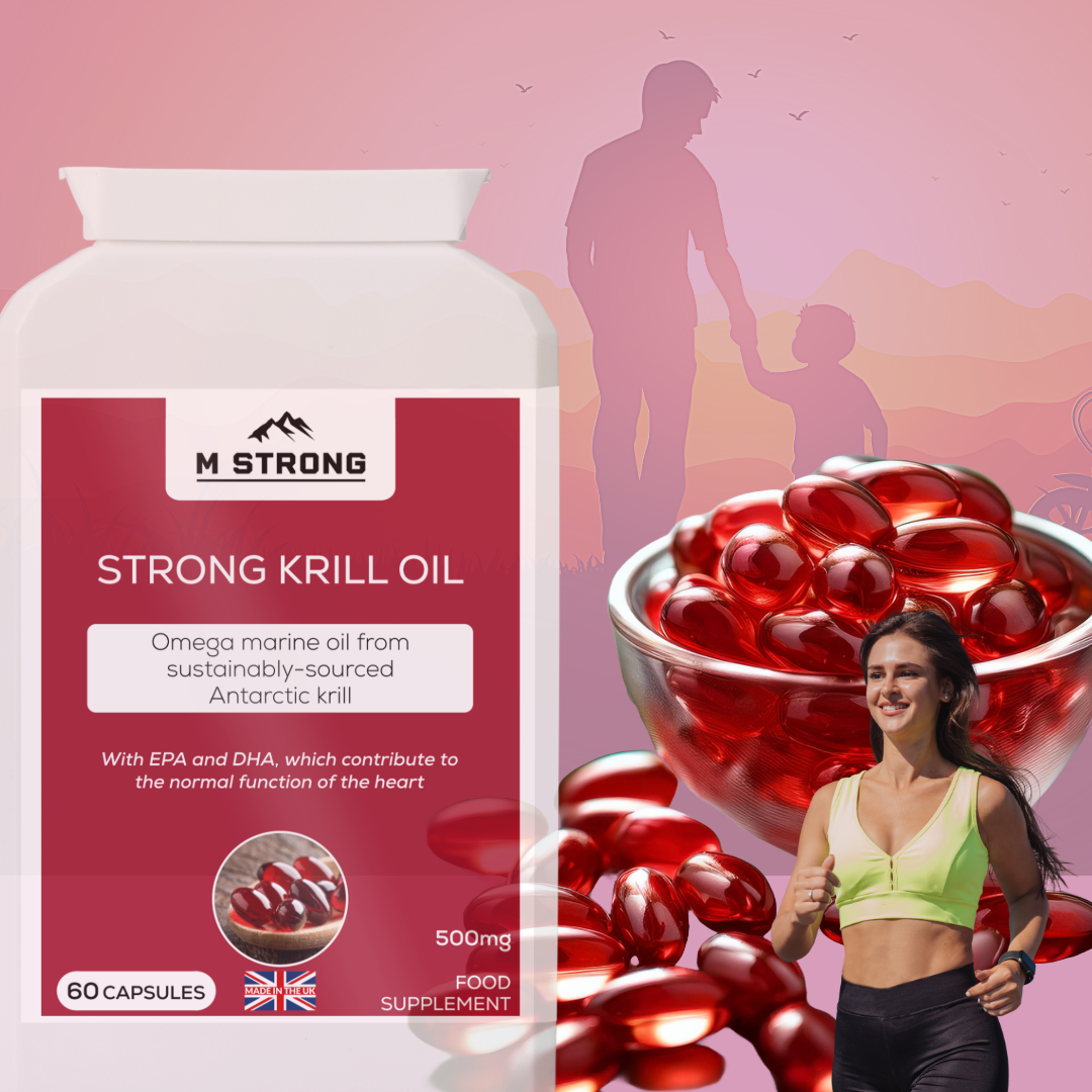 STRONG Krill Oil is a premium supplement rich in omega-3 fatty acids, designed to support joint health, heart wellness, and improve circulation for better overall vitality and energy.